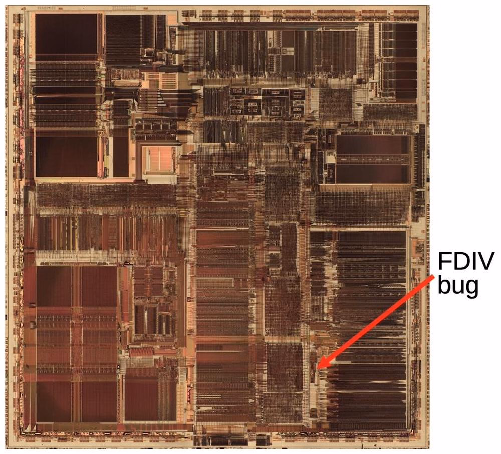 A fascinating deep dive look at one of the most well-known bugs in computing history, the 1993 Pentium FDIV bug. Ken Shiriff actually grabbed a microscope to analyze the processor and mapped out exactly what happened on the hardware level, and the details of Intel’s (surprising) fix.