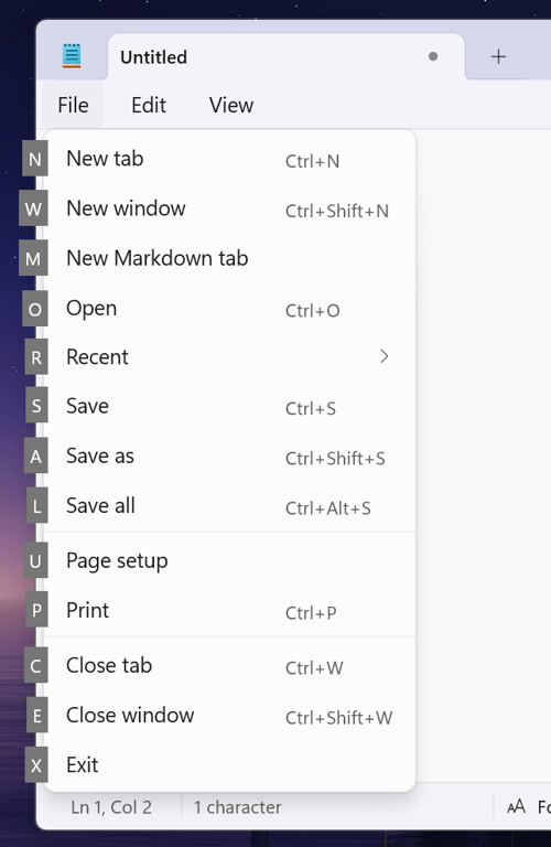 Opening Windows 11 today, it feels like the system got less elegant. I can still press Alt and stuff happens, but it doesn’t look nearly as good or tightly integrated, and the two alternate entry points (Alt and the keyboard shortcuts) become muddled: