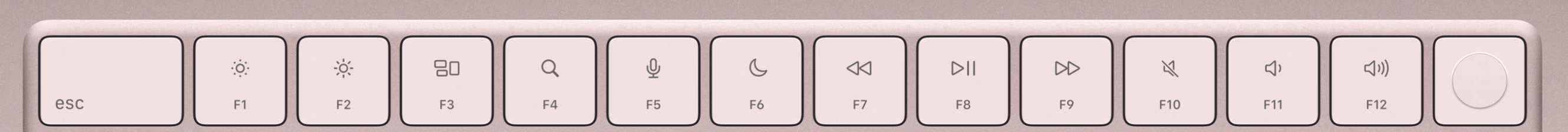- ⇧ and brightness/volume: Secondary display/Add pings (both are most important; Shift is nice to press and the “default” modifier key).