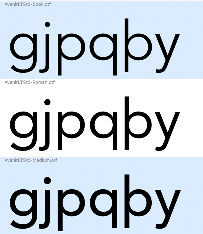 Did anyone ever notice that Avenir LT has some serious errors in the descender lengths of p and q in certain weights?