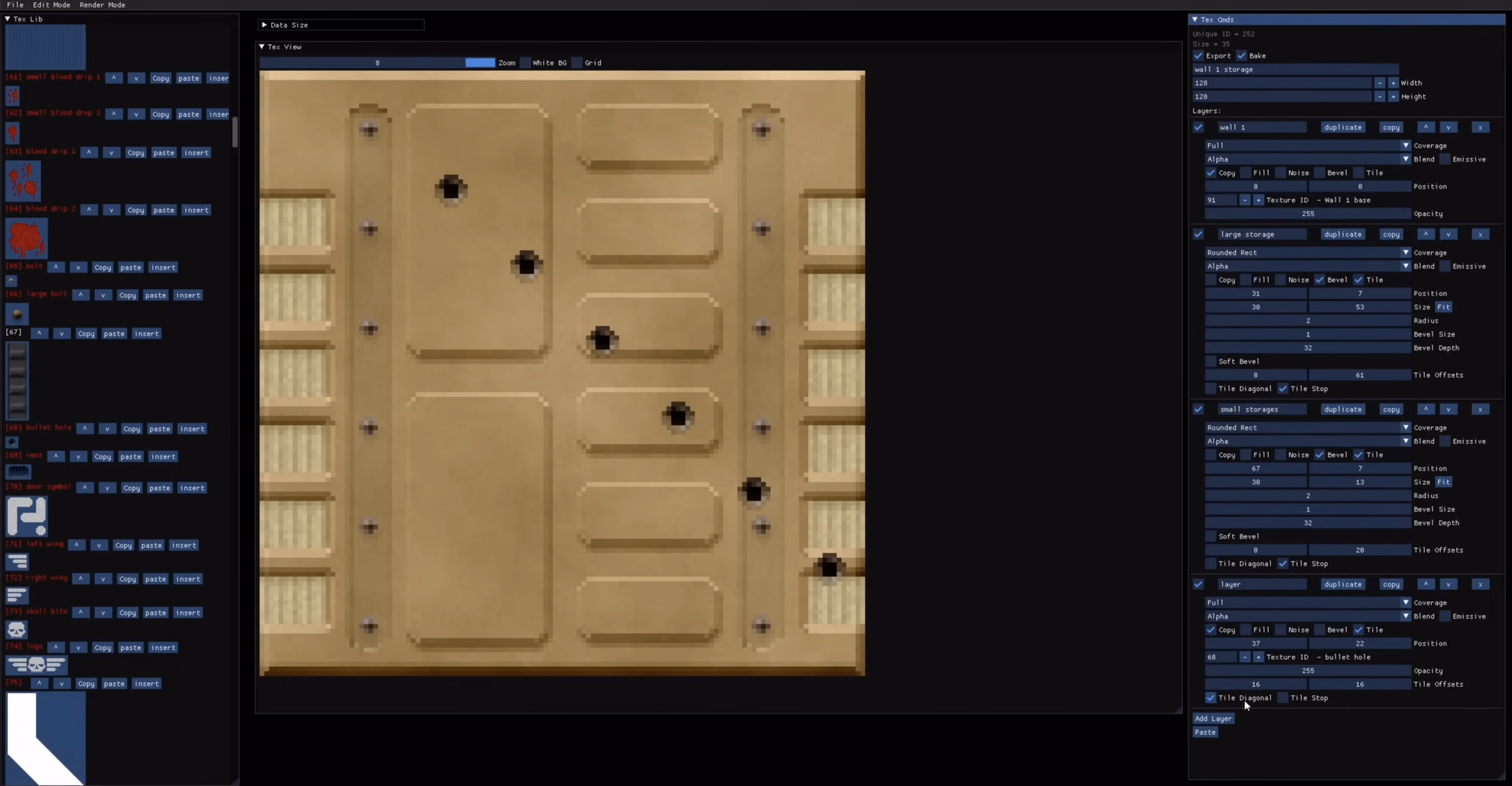The same was done for textures: the creator wrote a bespoke text editor that saves each texture as smaller pieces and combination instructions – a sort of a “PDF” of a texture rather than a more costly scan of the printed page – and re-generates it on entry.