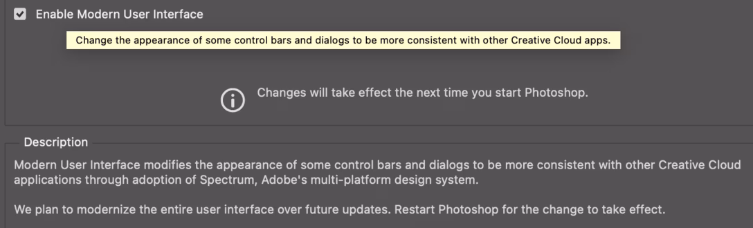 I started this post talking about a setting, and there is another setting in Photoshop, buried on the last page – you can turn off this “modern user interface” that feels so underbaked the moment you start actually using it. But is that a real solution to anything? Toggle it on and the existential dread comes back: Am I going to miss out on some good stuff? When is the hammer going to drop? It’s not a tax break, it’s only a tax extension.