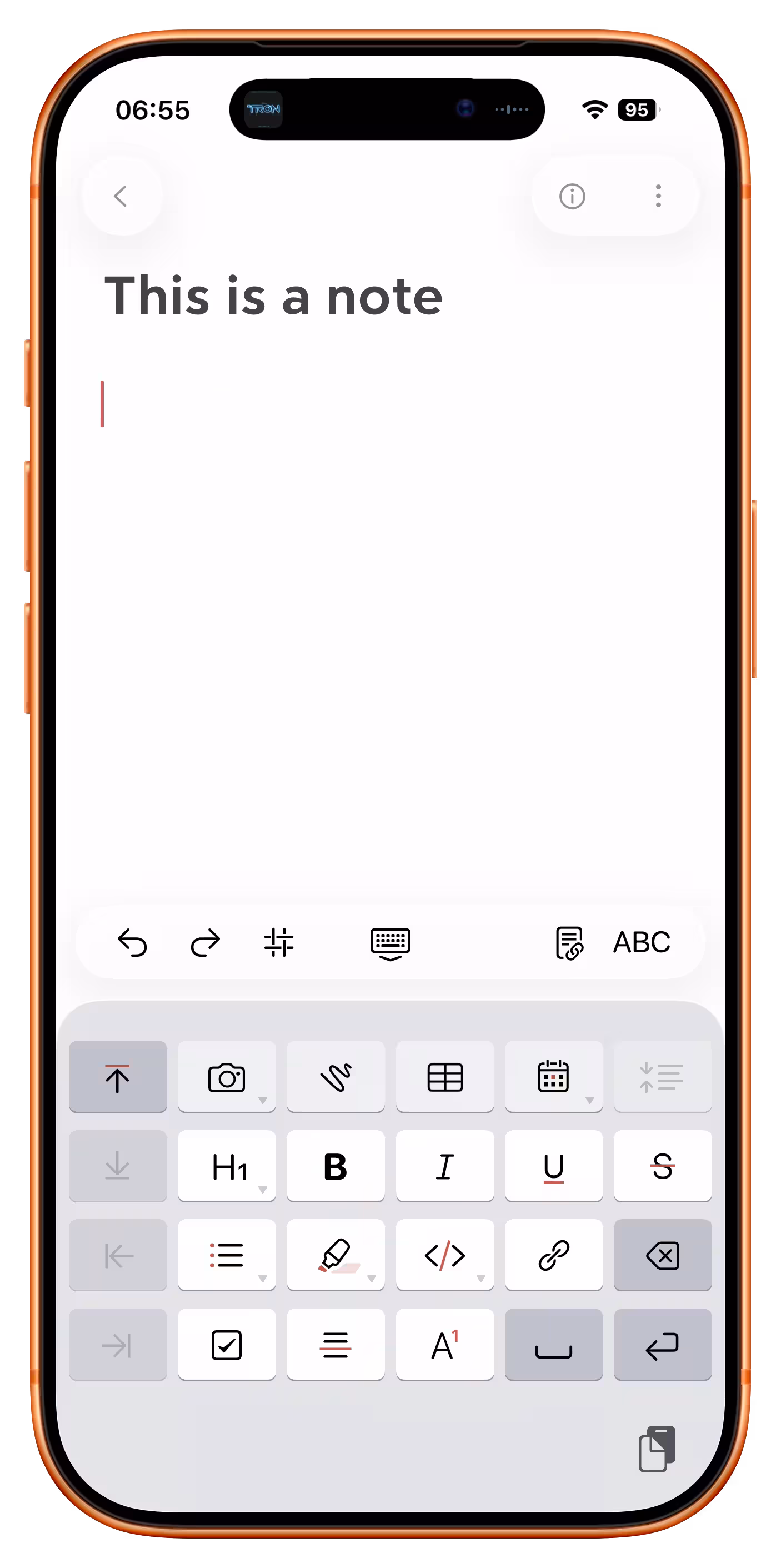 Bear (the note-taking app) does something interesting: after a button press, it replaces the onscreen QWERTY keyboard with a “funpad” or a “function keypad” (like StreamDeck or Figma Creator Micro). This achieves a similar result to a scrolling toolbar above the keyboard (see: Apple Notes), but in a different way. I haven’t seen anything like this before, and I think it’s really clever and it has worked well for me in practice.