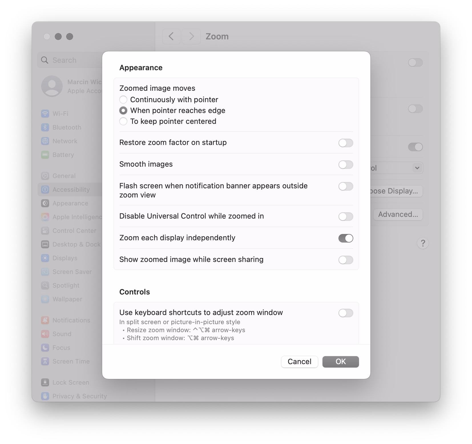 Go to Settings > Accessibility > Zoom, and then turn on “Use scroll gesture with modifier keys to zoom.”