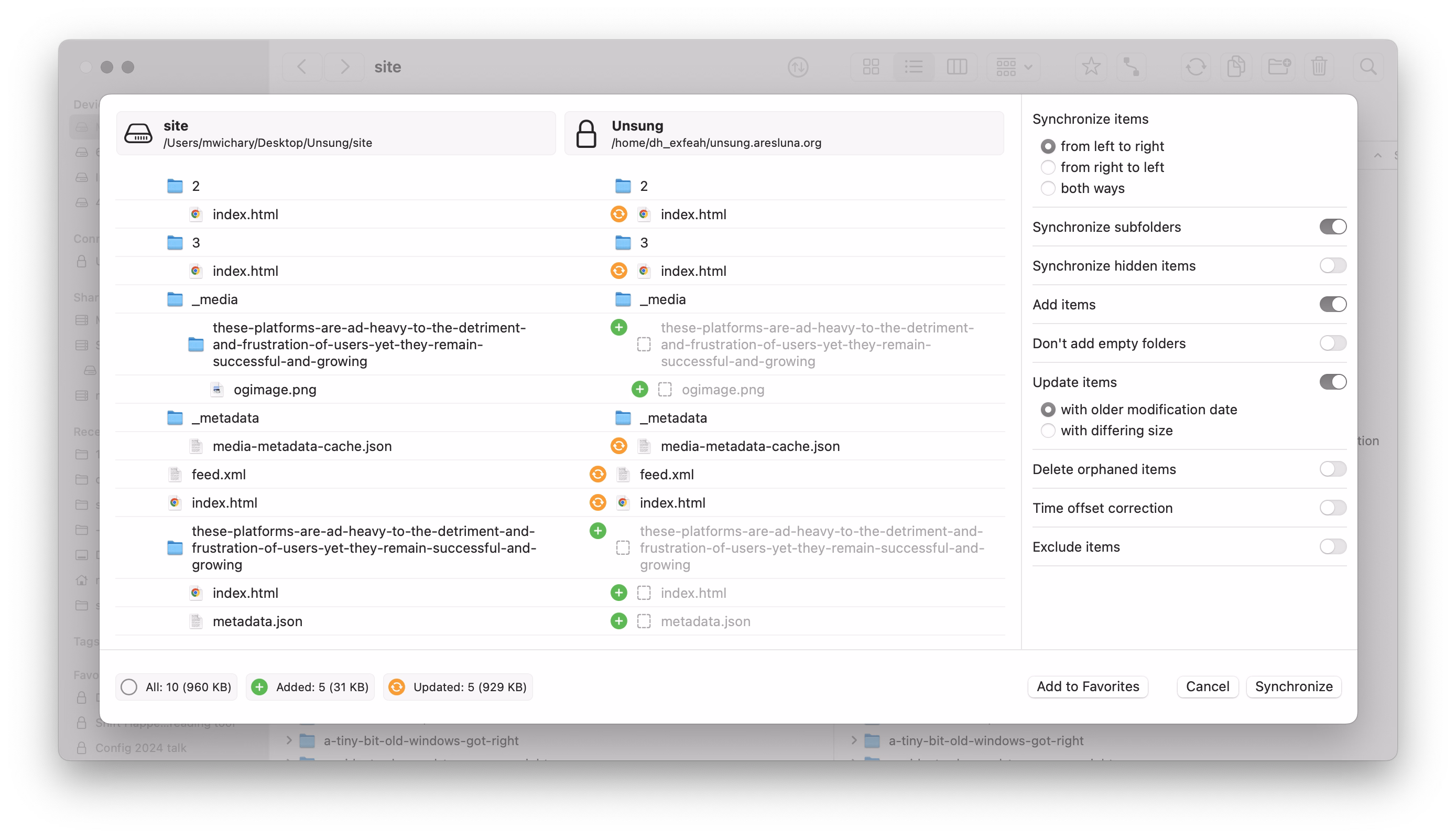 There is an app I use a lot called Forklift, a suped up Finder, with one of its functions being syncing files to a remote server.