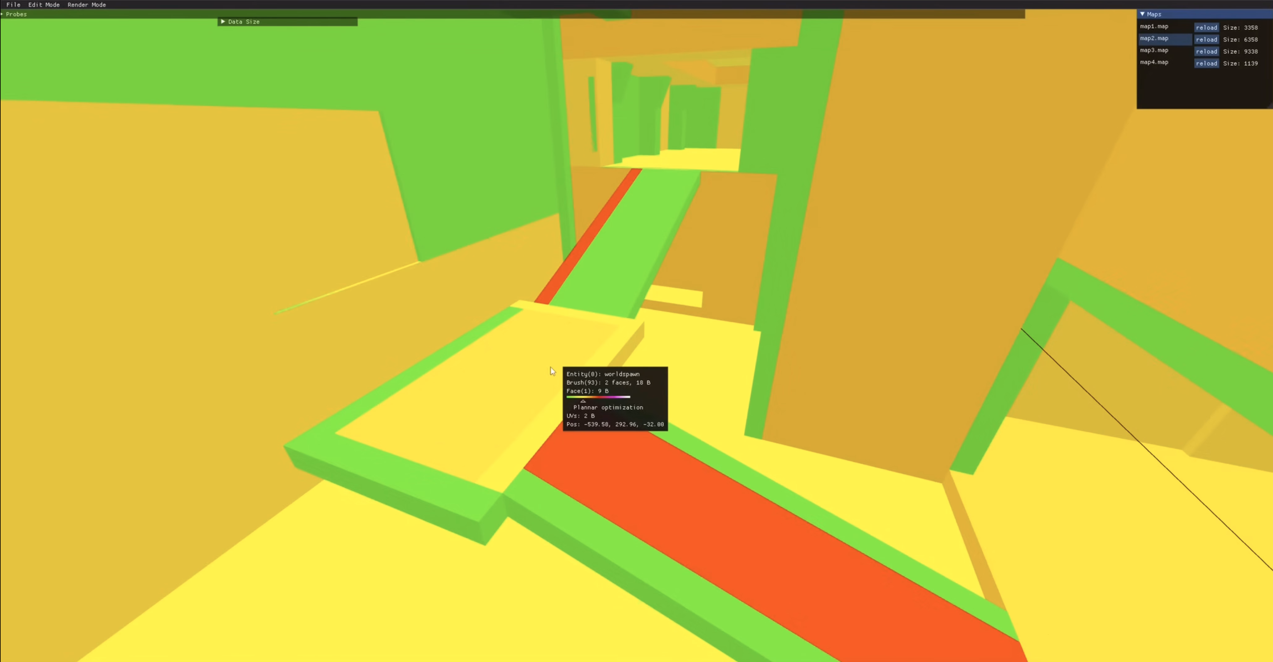 The same was done for textures: the creator wrote a bespoke text editor that saves each texture as smaller pieces and combination instructions – a sort of a “PDF” of a texture rather than a more costly scan of the printed page – and re-generates it on entry.