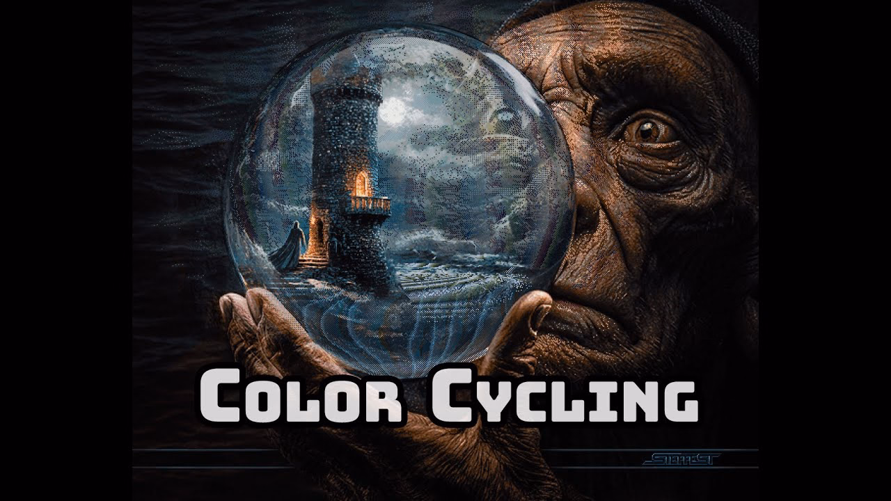 Palette cycling is an interesting technique borne out of limitations of old graphic cards. Today, any pixel can have any color it wants. In the 1970s and 1980s, you were limited to just a few fixed colors: as few as 2 for monochrome displays, or 4, or 8, or – if you were lucky – 16. Some of those fixed palettes, like CGA’s, became iconic:
